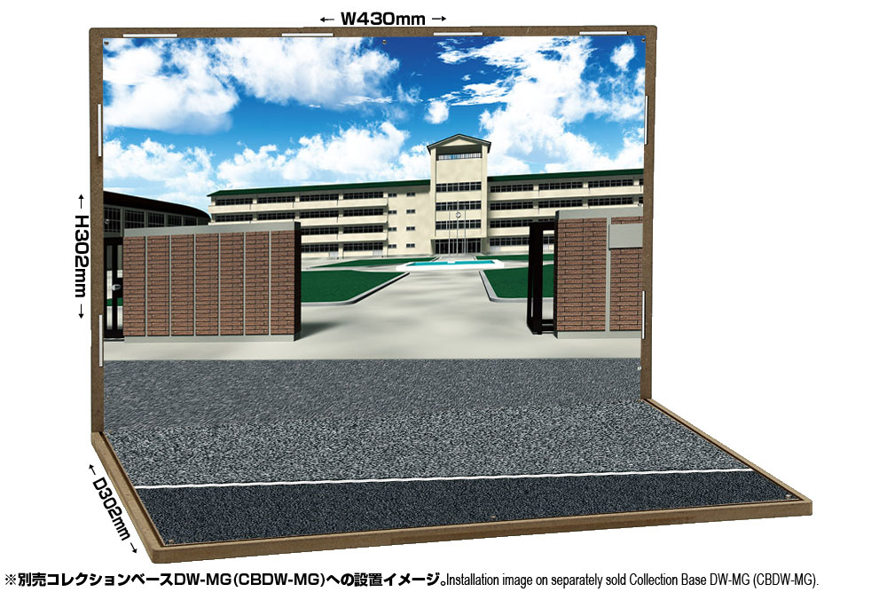 コレクションベースDW(DW-MG)で利用可能なジオラマシートDWシリーズの学校セットAです。目安として1/12〜1/6サイズのフィギュアでお楽しみいただけ、余裕あるサイズを生かして1/12〜1/8などのサイズでは立体的な展示ディスプレイも可能です。対応ベースは別売となります。両面印刷2枚組で、表と裏がそれぞれベースと背景になっており、1パターンが楽しめます。コレクションベースに付属の極小固定マグネットを利用して、簡単に設置が可能です。お気に入りのシーンが完成したら、別売のUVカットアクリルカバーで紫外線・ホコリから展示物を守る高機能なディスプレイケースへ発展可能です。材質はこれまでの従来のジオラマシート同様のノーマルタイプで、コーティング無しとなります。 |