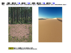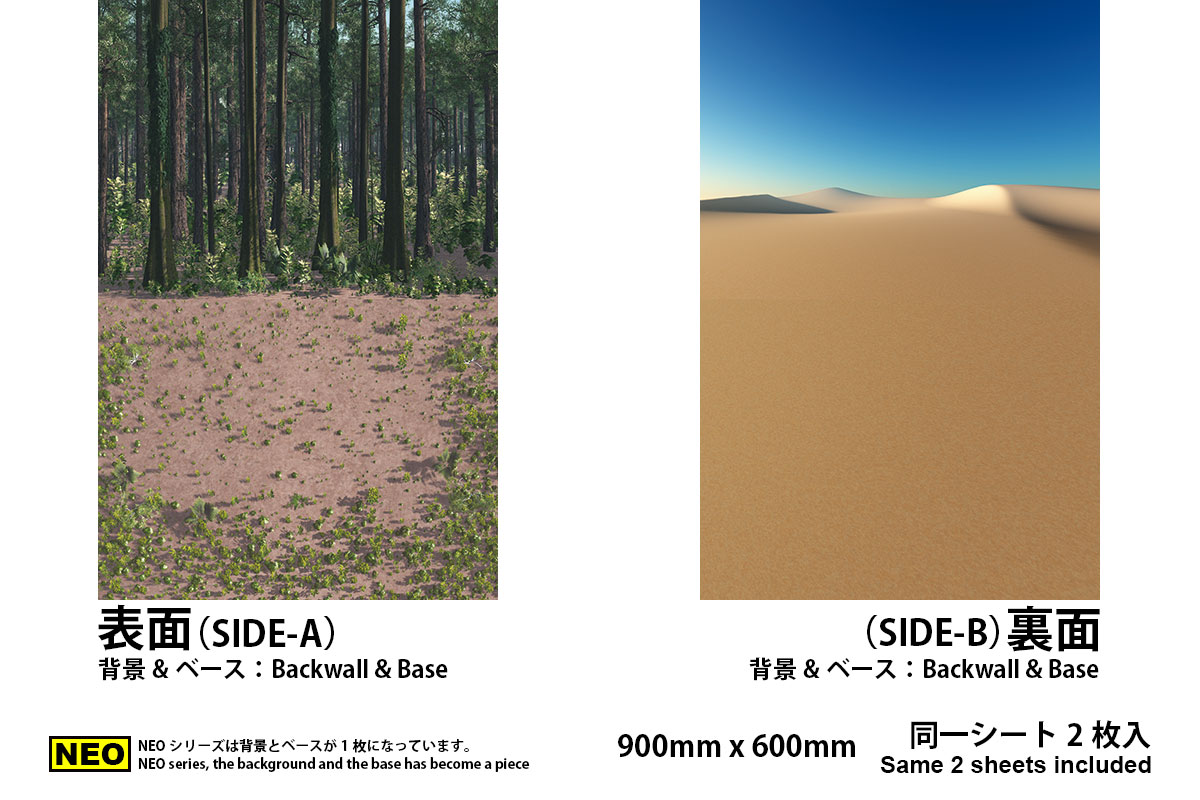 汎用的な森林内と砂漠の情景をイメージしたNEOシートです。ベースから背景へとシームレスにつながるNEOシートですので、様々なシーンでお楽しみいただけます。