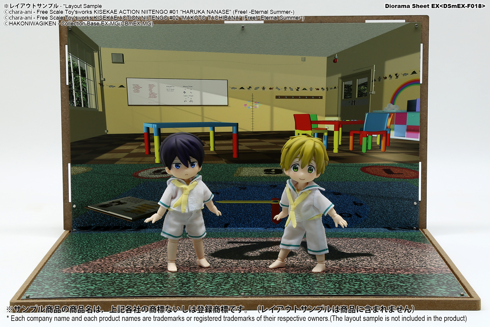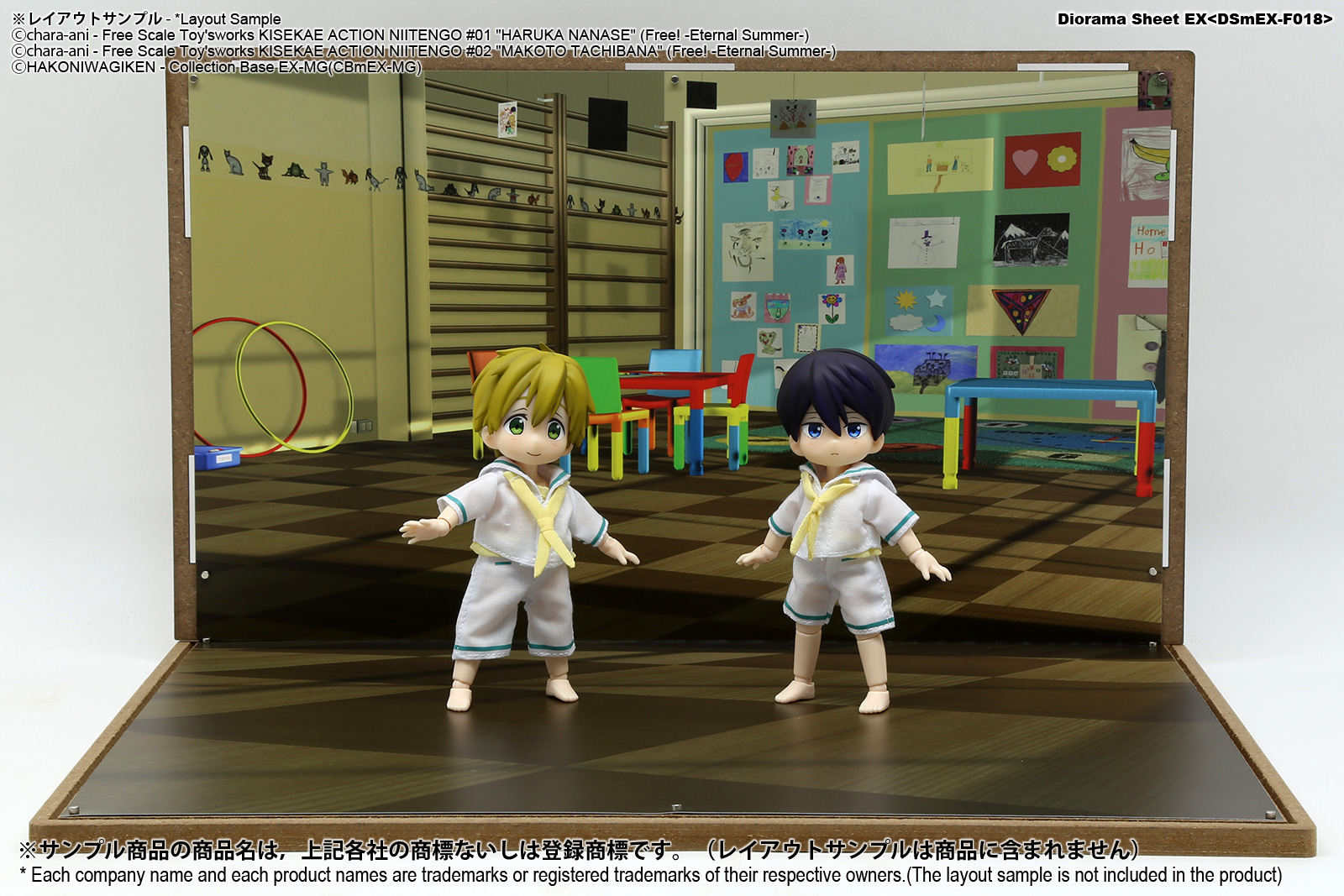 コレクションベースEXシリーズで利用可能なジオラマシートEXシリーズのプレイルームセットAです。対応ベースは別売となります。ノーマルタイプのマットコート紙、両面印刷1枚組で、2パターンが楽しめます。コレクションベースに設置して利用する際は、背景とベース部分のカットマーク位置でカットしてご利用いただくと便利です。コレクションベースに付属の極小固定マグネットを利用して、簡単に設置が可能です。、お気に入りのシーンが完成したら、別売のUVカットアクリルカバーで紫外線・ホコリから展示物を守る高機能なディスプレイケースへ発展可能です。 |