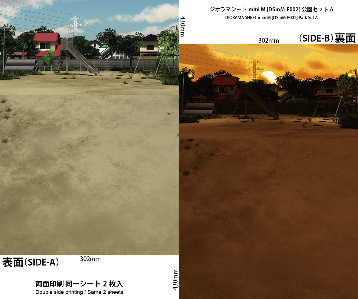 TOPページ > ジオラマシート > フィギュア対応商品 > DSmM-F002 ジオラマシートmini M [公園セットA]