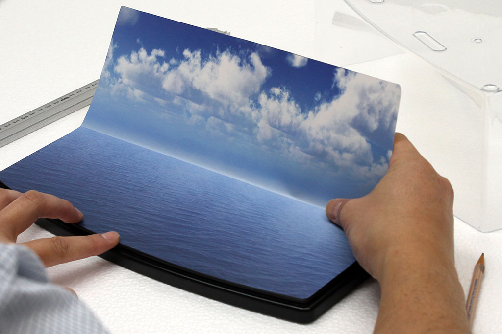 今回は艦船モデルを例に挙げてご紹介しましたが、ジオラマシートminiやジオラマシートを各種ディスプレイケースに設置する方法も基本的には同じです。小物などのアクセントを加えたり、背景部分の余りをケース内のサイドに貼り付けたりする方法も効果的ですので、思い思いのアイデアでご自慢のコレクション展示をお楽しみください。