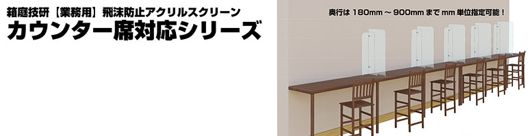 令和2年4月7日の新型コロナウイルス感染症緊急事態宣言直後より、国内でも飛沫防止アクリルスクリーンメーカーの先駆けとして、箱庭技研はこれまで2万セットを超える飛沫防止アクリルスクリーンをご提供させていただいております。これまで蓄積したノウハウとコスト削減努力の集大成として、新たな飲食店向け業務用飛沫防止アクリルスクリーンシリーズをリリースさせていただきます。