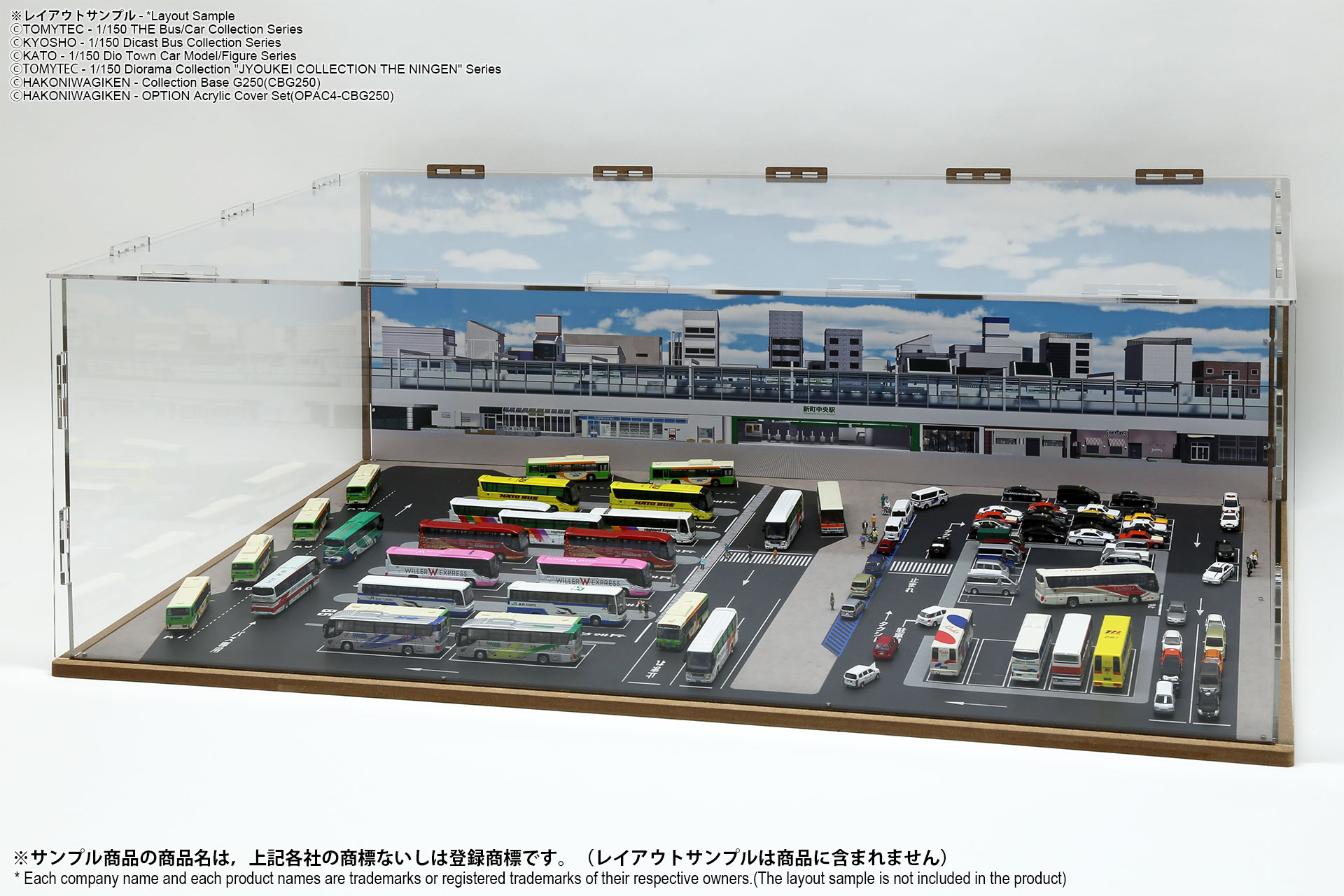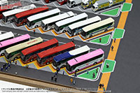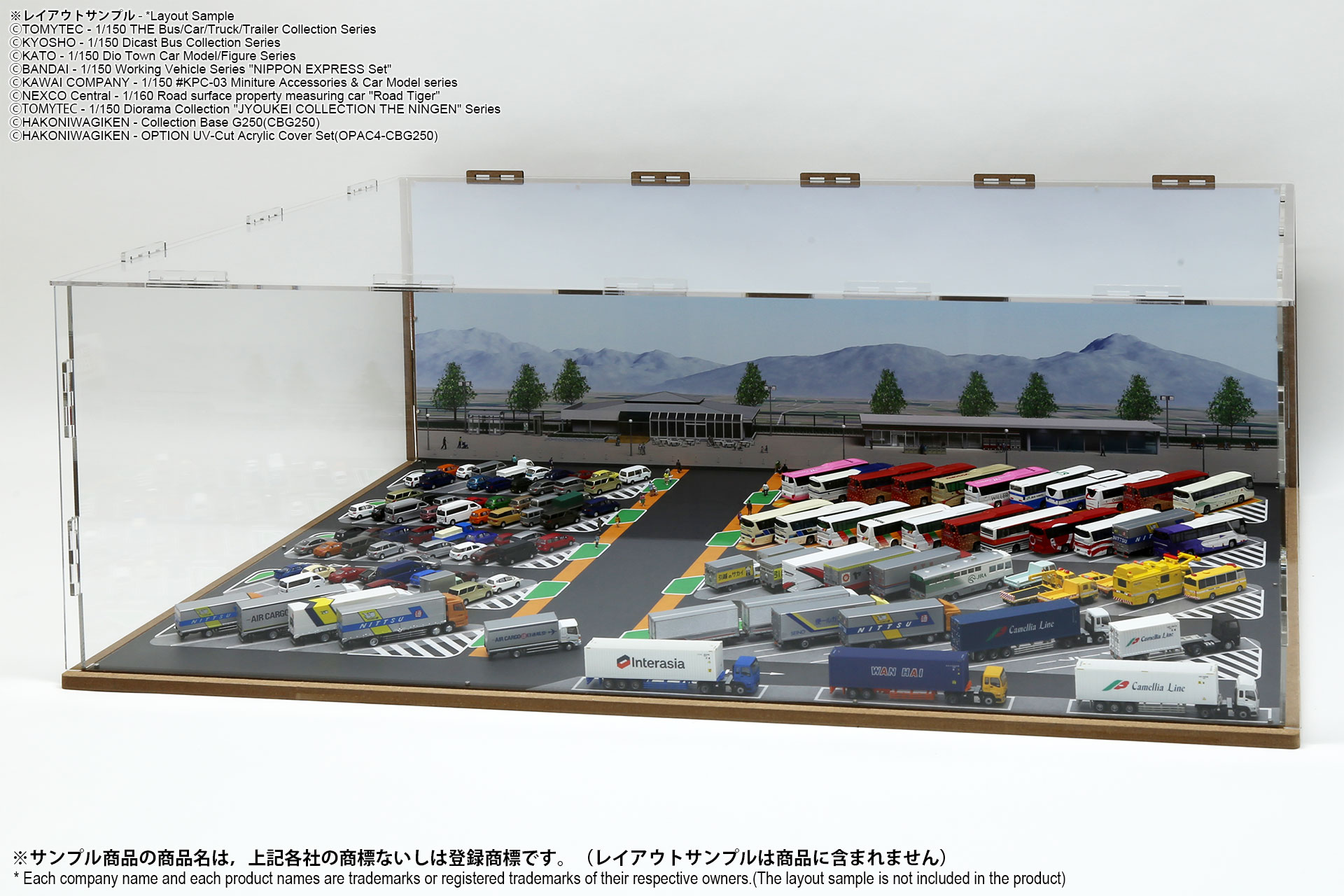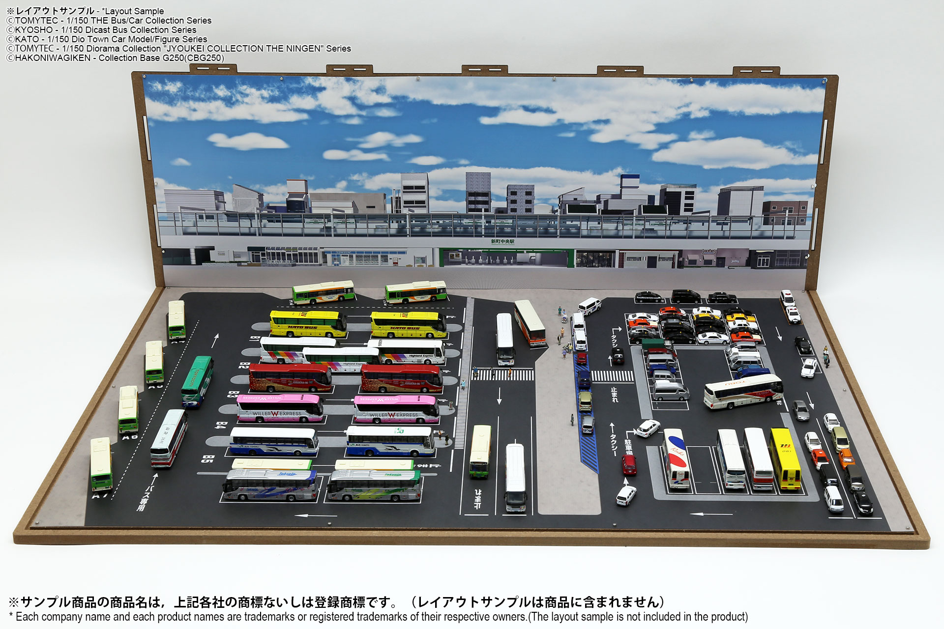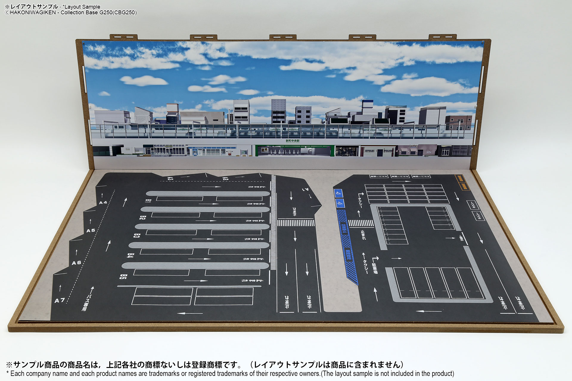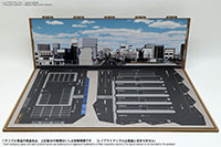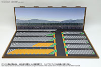 ベース表面は駅前ターミナル、ベース裏面はSA/PAの2パターンが印刷されたHGタイプのシート1枚と、前後2パターンの厚口マットコート紙タイプの背景シート4パターンが付属した1/150スケール対応のジオラマシートG250タイプです。ベースシートと背景シートの組み合わせで、4パターンからお好みで選んでご利用いただけます。ベースシートは耐久性向上と反射防止効果を備えたマットPPコーティングのHGタイプを採用しております。専用のコレクションベースG250に対応しますが、シート単独でもご自分で背景シートを固定することでご利用可能です。 |