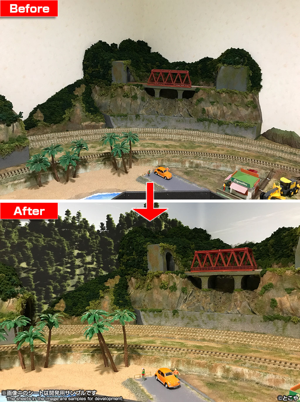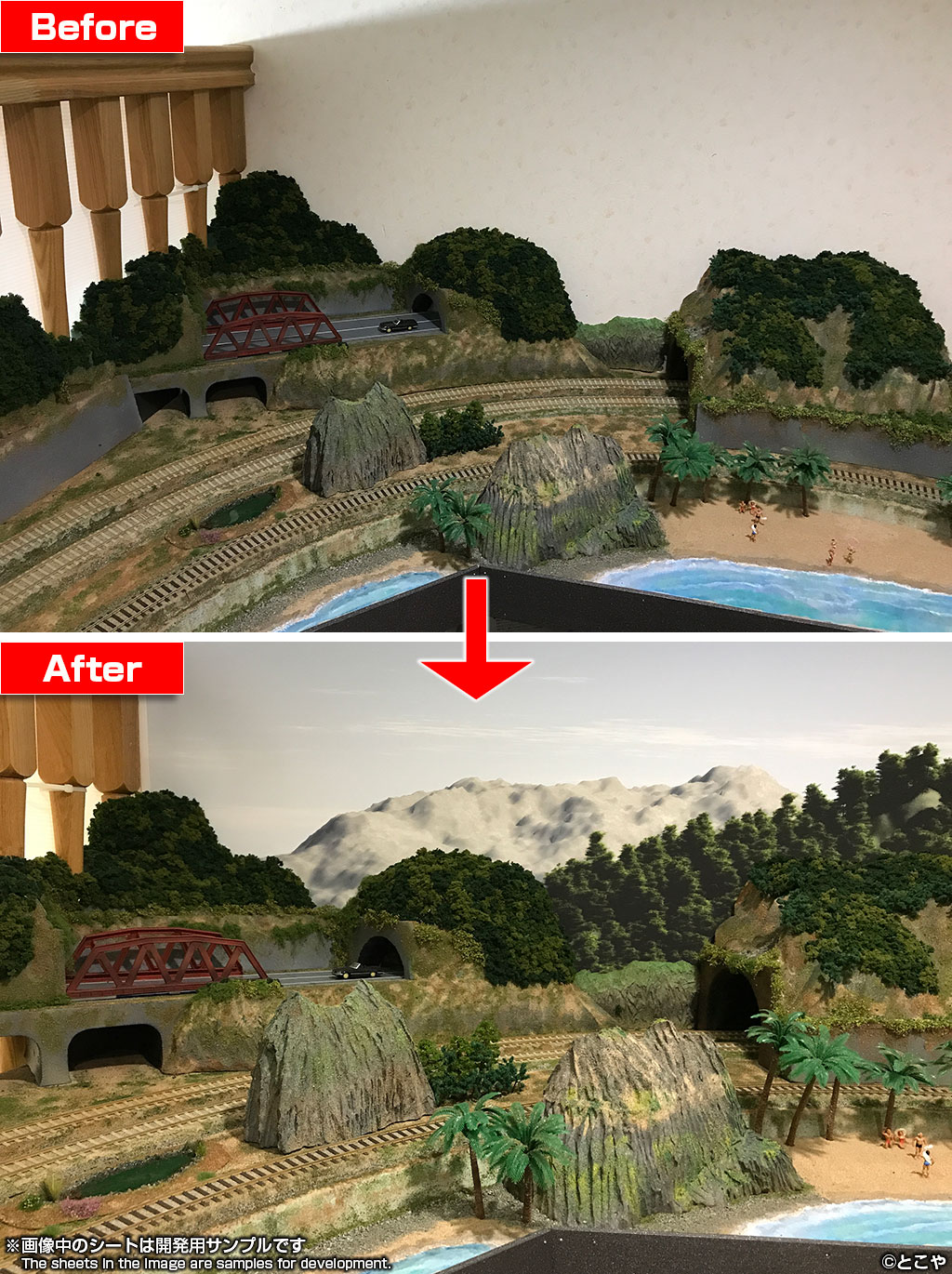 ■ジオラマシートPROご利用上の注意:ジオラマシートPROは特殊な無反射素材を使用しております。印刷面は反射を抑えるための特殊な受理層となっており表面が傷つきやすいため、ご利用時にはご注意の上、丁寧なお取扱いをお願い致します。 |