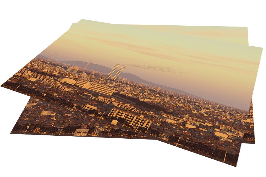 TOPページ > ジオラマシート > 鉄道模型対応商品 > DSF-R002 ジオラマシート [FREE 市街地背景2(夕方)]