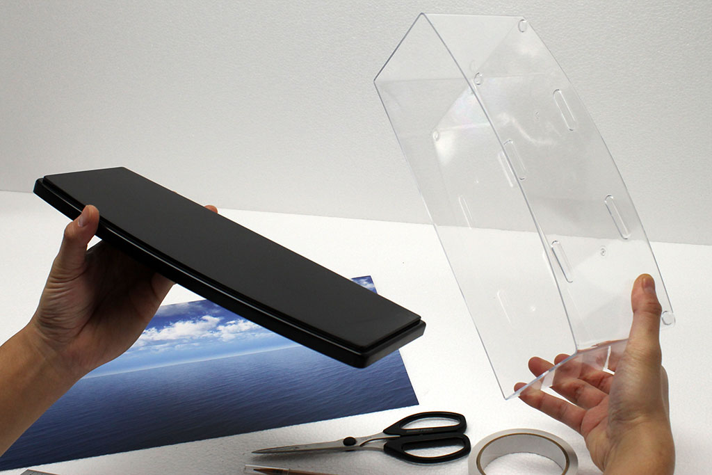 様々なディスプレイケース・コレクションケースが各社から発売されています。ここでは、ジオラマシートmini(DSm-S001)を例に、ディスプレイケースにジオラマシートminiを設置する簡単な方法をご紹介いたします。